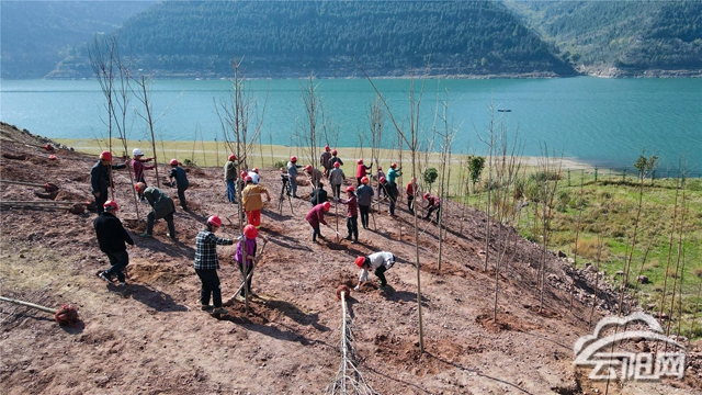 在云陽鎮,建設中的沿江公路兩旁,村民們正利用春季植樹的大好時節進行植樹造林,大家分工協作,你培土,我扶苗,干得熱火朝天。