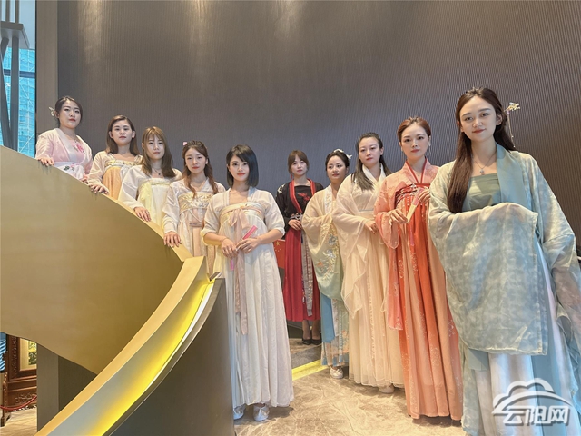 在清風上江酒店,10名迎賓人員身穿華服,綬帶翻飛,簪花步搖,見到賓客,她們雙手平伸,指尖交錯,置于腹部,欠身行禮表達敬意。不僅向賓客展示了中國傳統服飾文化,同時也讓賓客更多地感受到了云陽人的熱情。“主要是為迎接首屆長江國際華服藝術展的活動開展,帶給客人一種全新的視覺享受,更是為了傳承咱們中華民族的傳統文化。”清風上江酒店副總經理王娟說。