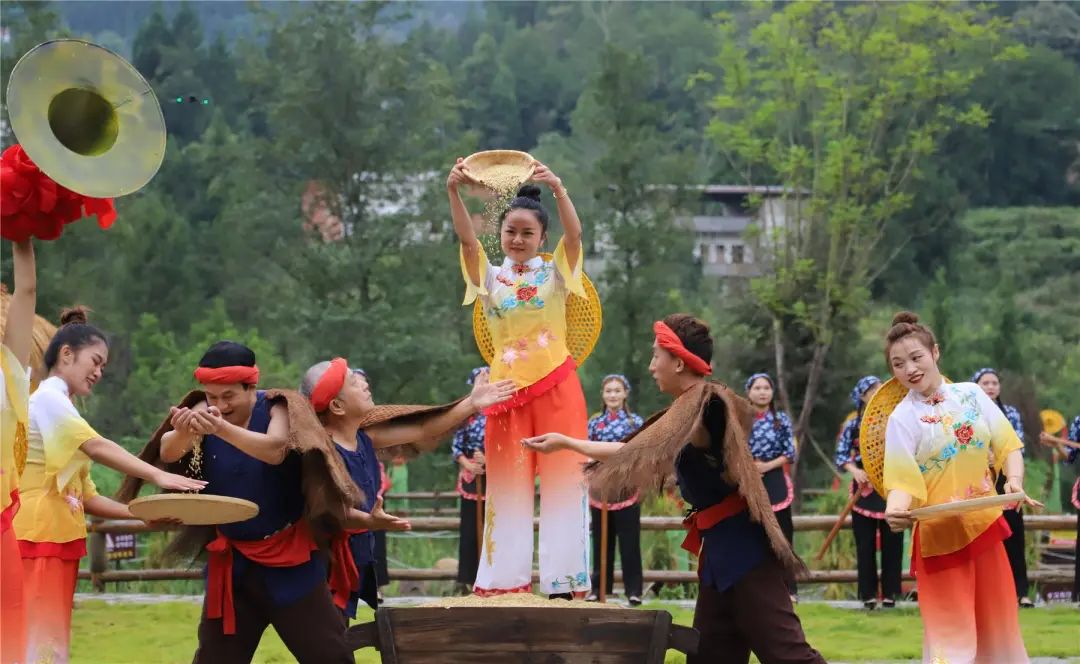活動(dòng)現(xiàn)場(chǎng)還有沉浸式演出《稻花香里說(shuō)豐年》、新民歌情景表演《太陽(yáng)出來(lái)喜洋洋》、非遺《天地糧倉(cāng)》等節(jié)目,生動(dòng)形象地反映了云陽(yáng)勞動(dòng)人民的生活場(chǎng)景,表達(dá)了勞動(dòng)人民豐收的喜悅和美好的愿景。