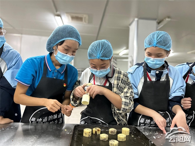 活動中,帶隊老師向孩子們講述了中秋節的來歷、習俗等知識,孩子們也分享了有關中秋的詩詞與美食。糕點老師向大家示范了月餅制作的基本流程和方法,同學們認真聆聽、躍躍欲試,揉面、剁餡、稱重、包餡、烘烤……在專業師傅手把手的指導下,大家分工合作、相互配合,一會兒工夫,一個個造型精致、圖案精美的月餅便擺滿操作臺。孩子們聚在一起,欣賞著自己的“杰作”,充滿了成就感和喜悅感。等到香氣撲鼻的月餅新鮮出爐,同學們紛紛圍過來品嘗,吃著自己親手制作的月餅,更是酥甜入心。