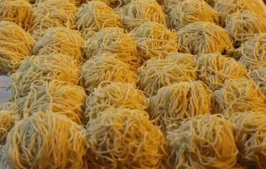 經過和面、壓片、切條、截斷等多道工序后