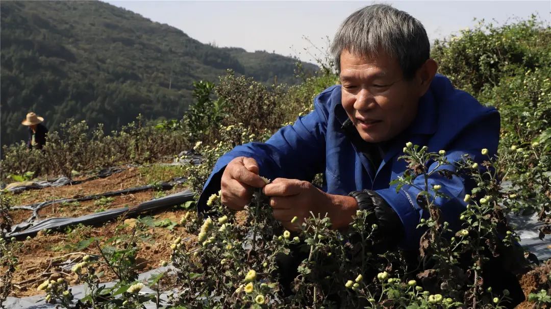 村民韓道銀說:“在基地上工,一天是采摘8個小時,一個人能采摘120多斤菊花,能賺一百多塊錢。”