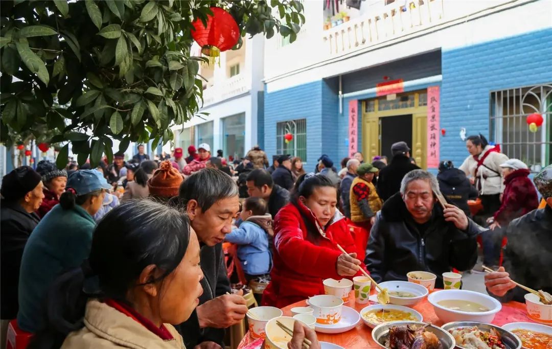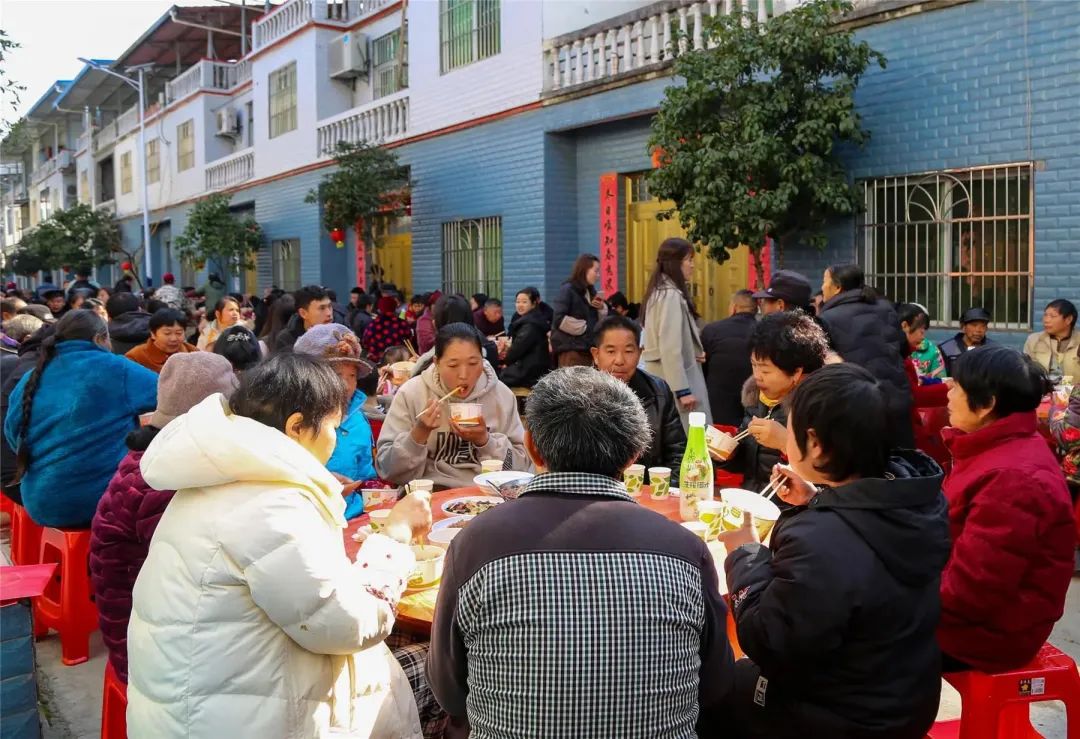 村民們有序圍坐桌旁