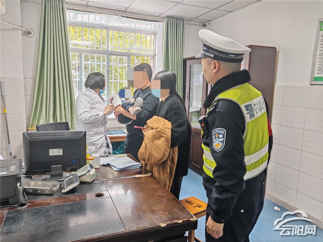 為了加快送醫速度,民警通過喊話讓路面駕駛員積極配合,從路中間開出一條道,僅僅十分鐘就將小孩送到了紅獅鎮衛生院。在民警的陪伴下,小孩的父母也鎮定了下來。后通過醫生的及時治療,小孩從抽搐昏迷中蘇醒過來。