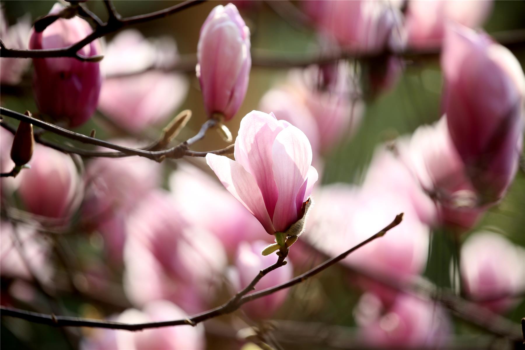 在云頂廣場,放眼望去,粉紅色、白色的玉蘭花交錯相間,或含苞欲放,或花枝招展,相互簇擁著,一陣微風吹過,玉蘭花迎風搖曳,宛若天女散花,給城市增添了無限春意。滿樹的玉蘭花潔白如玉,飽滿爭艷,引來了不少市民駐足欣賞、拍照留念。