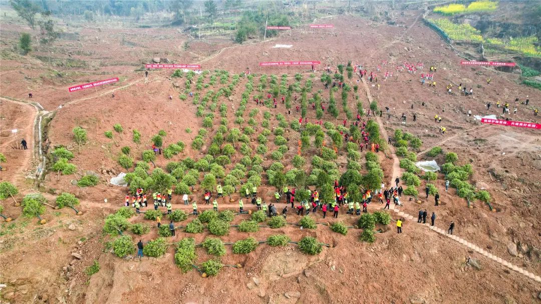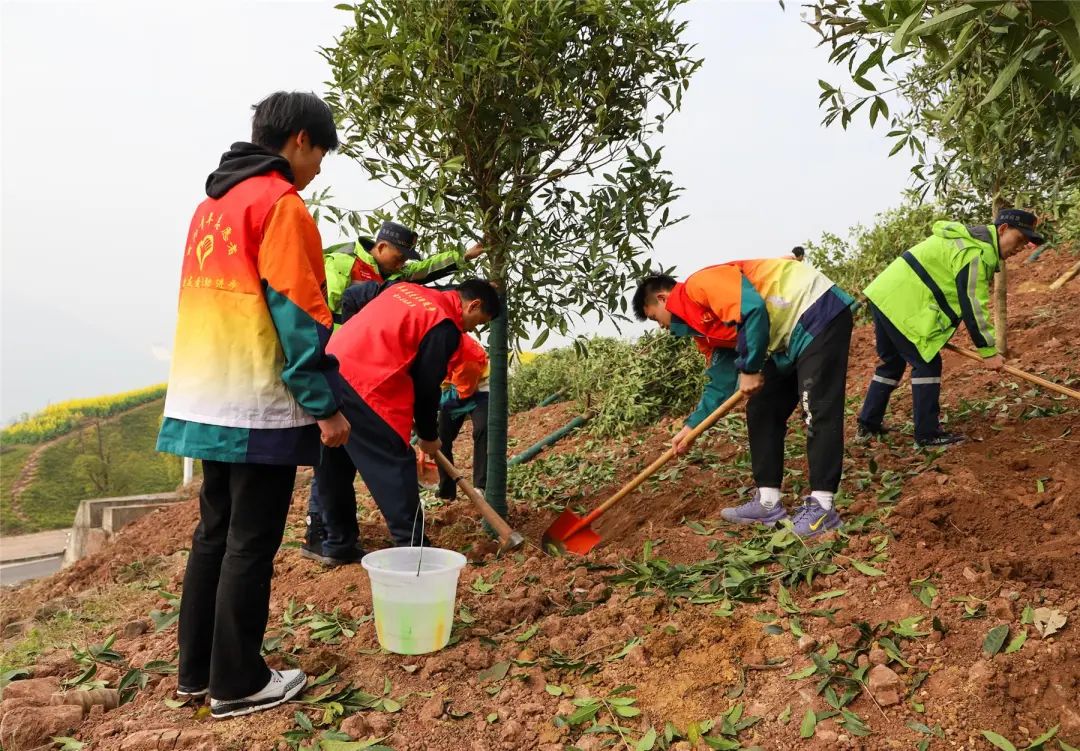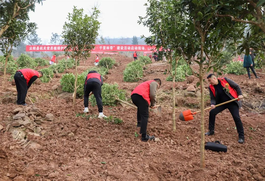 云陽每年依托“我為祖國植10棵樹”全民義務植樹活動種植各類樹木300萬株。日前,300余名干部群眾、志愿者來到縣級義務植樹基地青龍街道楊沙社區開展植樹活動,挖坑、扶樹、培土、澆水,經過1個多小時的辛勤勞動,栽下桂花、櫻花、水杉等珍貴樹種1000余株。用實際行動踐行綠水青山就是金山銀山理念,筑穩筑牢長江上游重要生態屏障,為美麗中國再添新綠。