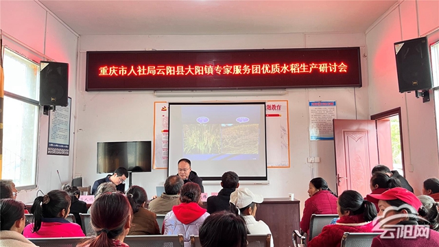 云陽網(wǎng)訊(記者 陳慧)一年之計在于春,一年好景在春耕。3月12日,市人社局專家服務(wù)團(tuán)到大陽鎮(zhèn)大樹村開展優(yōu)質(zhì)稻生產(chǎn)研討,強化春耕生產(chǎn)技術(shù)支撐,農(nóng)技專干以及種糧大戶現(xiàn)場“聽講”,為春耕做足“功課”。