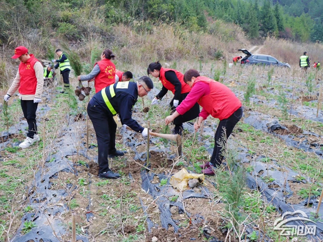 活動現場,大家熱情高漲、干勁十足,紛紛拿起鐵鍬、鋤頭等工具,投入到植樹工作中,分工協作、揮锨鏟土、栽種樹苗、培土圍堰、提桶澆水……一棵棵小樹苗被成功植入土中,在春風吹拂下,顯得格外生機勃勃。