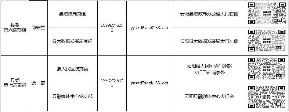 十五屆縣委第六輪巡察各巡察組巡察對象及聯(lián)系方式