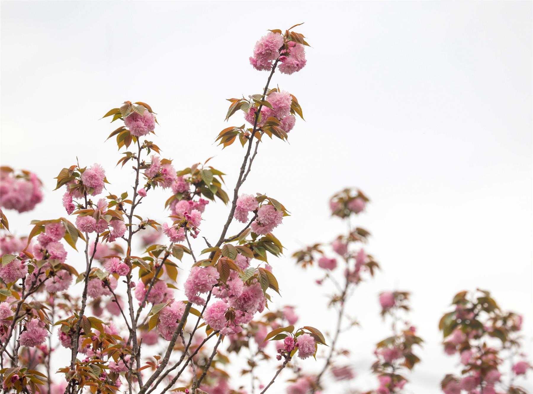 來到月光草坪公園親水步道,上千株晚櫻綻放在長江之濱,一排排粉色的櫻花俏立枝頭,令人怦然心動。步步櫻、時時景,游走其間,宛如畫中漫步。湊近細細打量,粉色的花朵團成圓形,片片花瓣晶瑩剔透,在陽光下閃射出盈盈光澤,十分柔美動人。市民們三三兩兩,漫步花下,賞花拍照,感受春日旖旎風光。