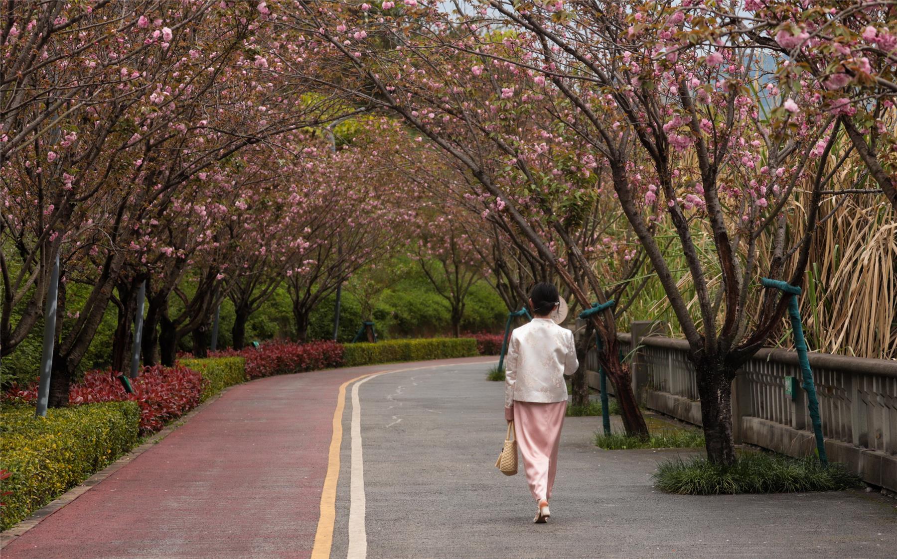 “現在櫻花長廊的櫻花開了,我特意穿上新中式的服裝和朋友過來拍照,感受春日浪漫。”游客李雨珊表示,如今環湖綠道已經成為她們一天的公園、一年的公園和一生的公園。