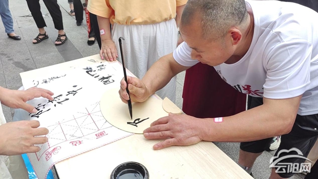 現(xiàn)場設置了分組游戲區(qū)和手工體驗區(qū),游戲區(qū)內(nèi)有粽子冰壺、釣粽子、手腳并用和蒙眼貼五毒等趣味游戲,每個游戲都巧妙地融入了端午節(jié)的傳統(tǒng)元素,讓參與者在歡樂中感受節(jié)日氛圍。手工體驗區(qū)則提供了書法團扇DIY的機會,居民們在這里親手制作屬于自己的團扇,將書法藝術與端午節(jié)的傳統(tǒng)風俗相結合,體驗中華文化的魅力。