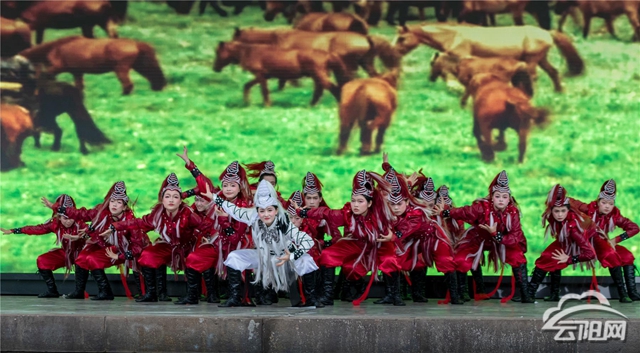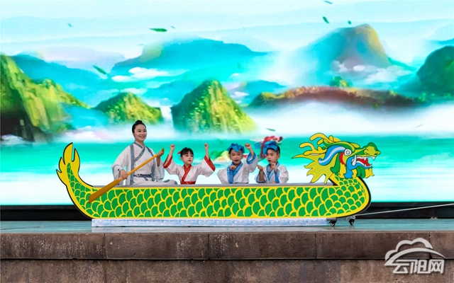活動伊始,主持人巧妙地運用模仿話術,以生動的語言描繪了端午節的起源、習俗和意義,使現場觀眾仿佛穿越到了古代的端午節慶典現場。文藝匯演在一場情景劇《端午知多少》中拉開序幕,舞蹈《風之馬》、獨唱《中國人》、健身《八段錦》、歌伴舞《山水云陽情》等形式多樣的文藝節目輪番上陣。舞臺上演員們表演形式生動、接地氣,用歌聲、舞姿感嘆美好生活,舞臺下各族群眾鼓掌、喝彩,并拿出手機記錄著精彩的瞬間。
