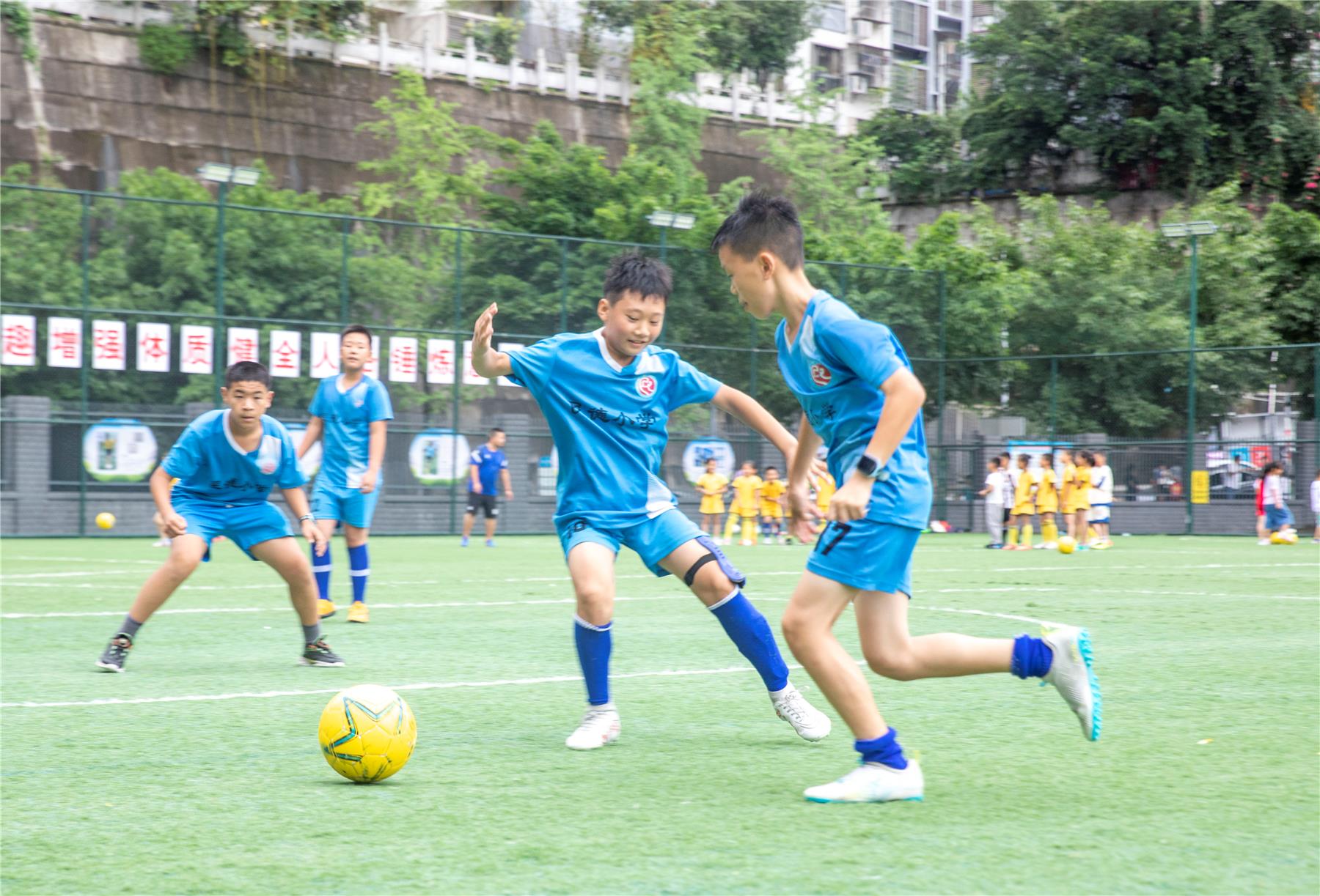 云陽網訊(記者 劉興敏)7月15日,奔跑,跳躍,運球.....300余名青少年在足球場上練得正酣。本次以“‘奔跑吧·少年’--足球夢想啟航”為主題的青少年夏令營在云陽縣民德小學青少年足球訓練基地舉行,來自全縣的7至12歲的青少年在這里實現自己的足球夢想。
