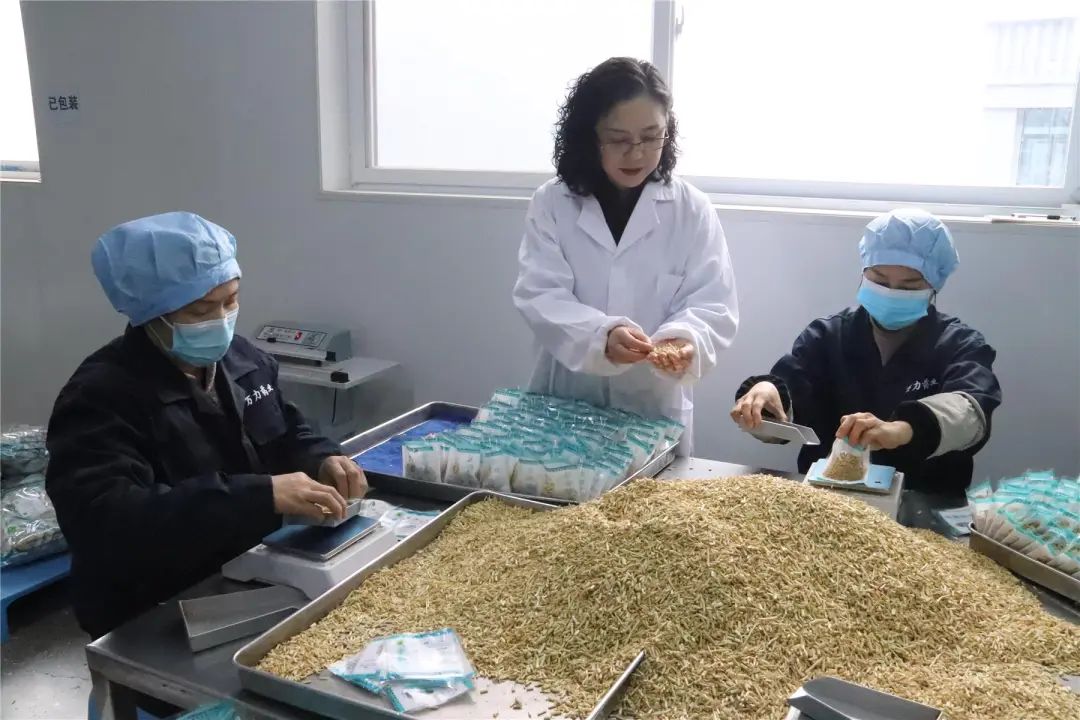 近日,在萬力藥業中藥飲片生產車間內,熊嬌正在指導車間工人將切制好的中藥材進行挑選、清除雜質、包裝等工作。