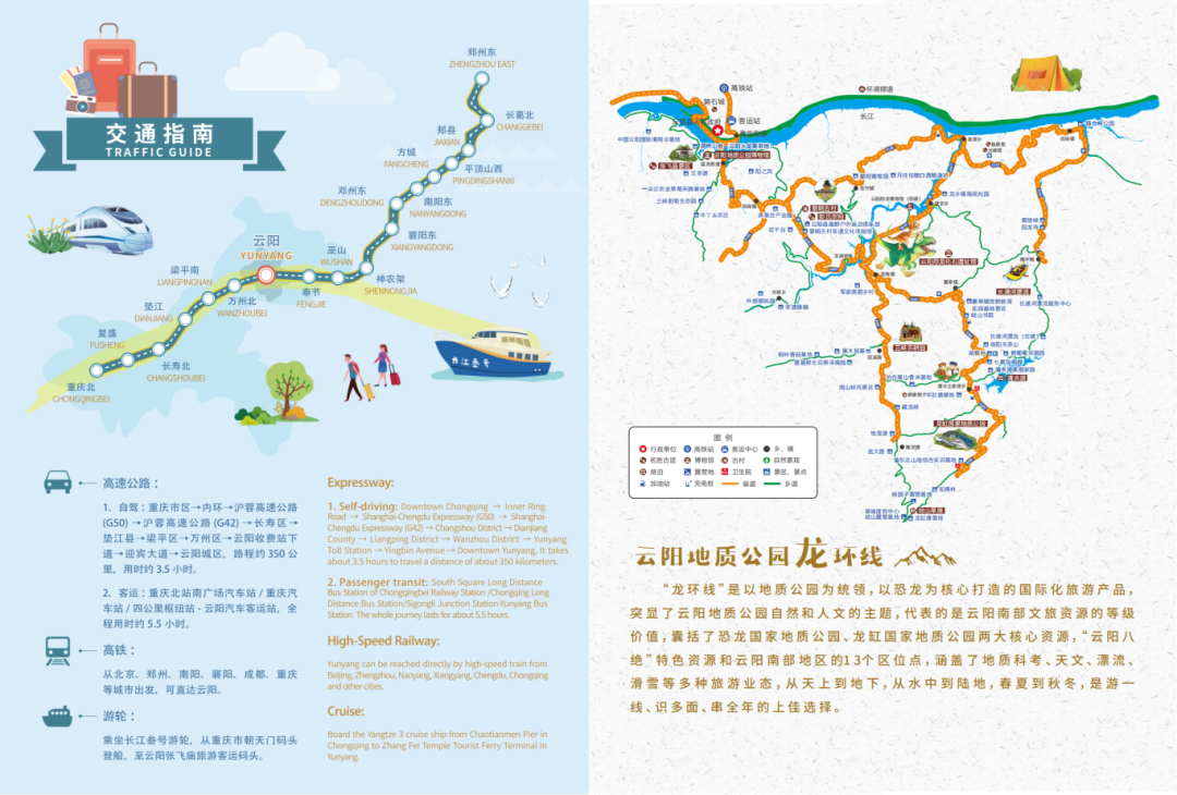 “龍環(huán)線(xiàn)”是以地質(zhì)公園為統(tǒng)領(lǐng),以恐龍為核?打造的國(guó)際化旅游產(chǎn)品,突顯了云陽(yáng)地質(zhì)公園?然和??的主題,代表的是云陽(yáng)南部?旅資源的等級(jí)價(jià)值,囊括了恐?國(guó)家地質(zhì)公園、?缸國(guó)家地質(zhì)公園兩?核?資源,“云陽(yáng)?絕”特?資源和云陽(yáng)南部地區(qū)的13個(gè)區(qū)位點(diǎn)。