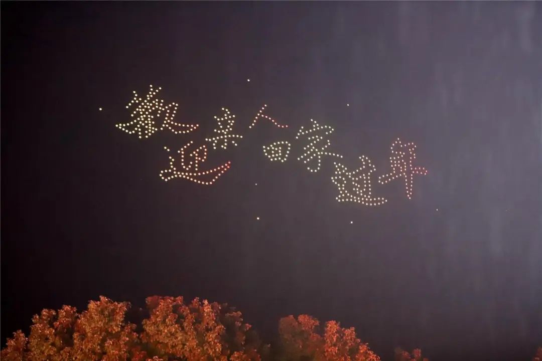 當晚,500架無人機緩緩升空,成為了晚會的重頭戲。無人機在夜空中描繪出一幅幅星光熠熠、美輪美奐的璀璨畫卷。“歡迎親人回家過年”“新春快樂”等字樣營造了喜慶、祥和的節日氛圍。