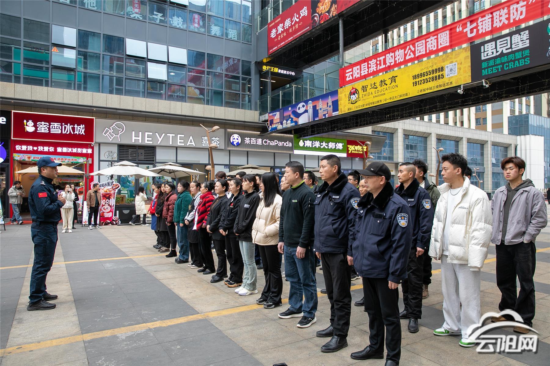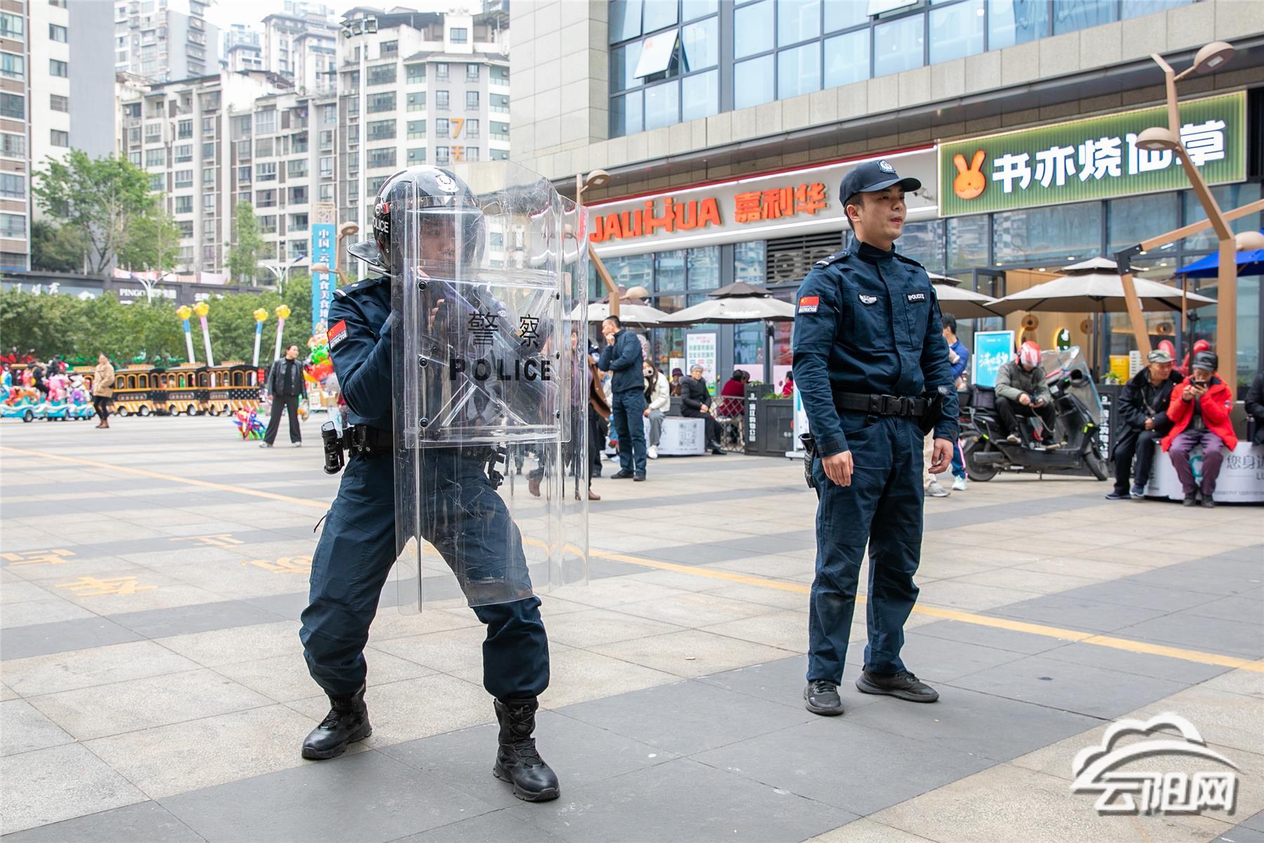 云陽網訊(記者 賀元河)3月11日,縣公安局青龍派出所聯合特警大隊在濱江購物公園商圈開展“七鋪聯防”防恐防暴應急演練。