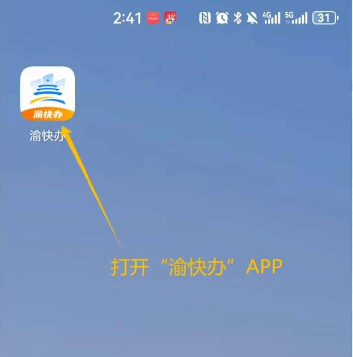 手機(jī)應(yīng)用市場(chǎng)下載安裝“渝快辦”APP,完成注冊(cè)并登錄。