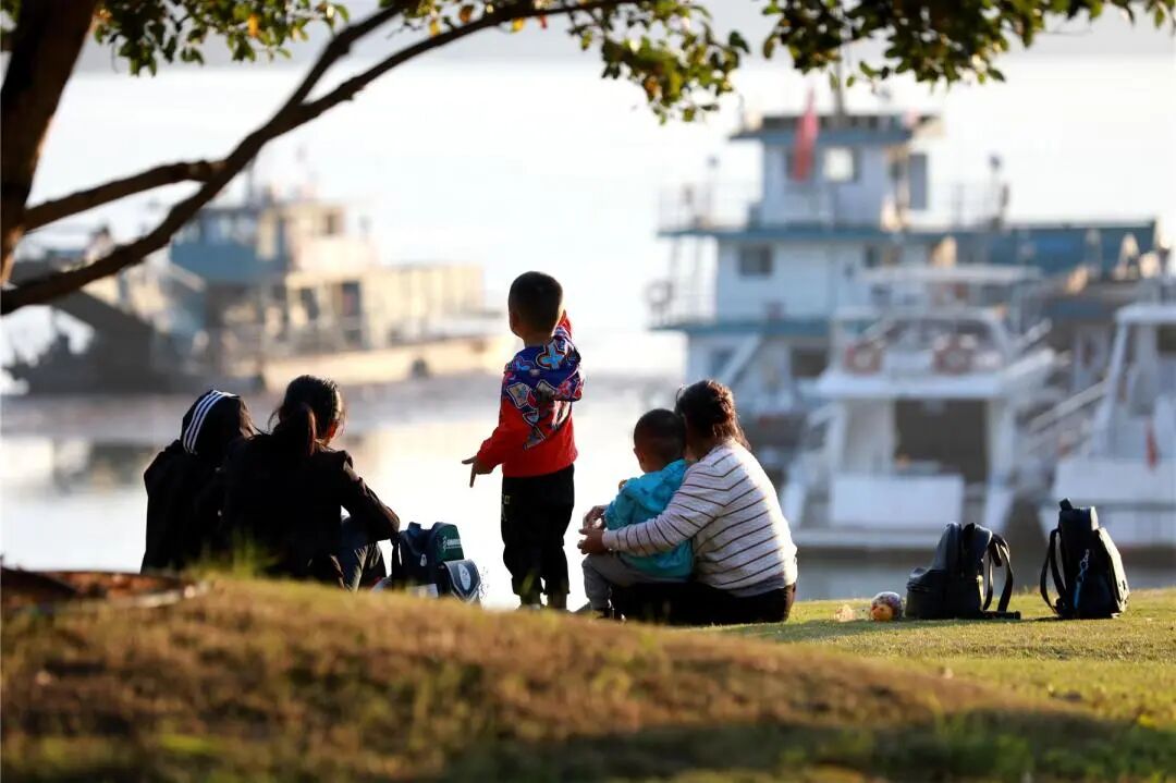 趁著晴好天氣,市民們紛紛來到江畔