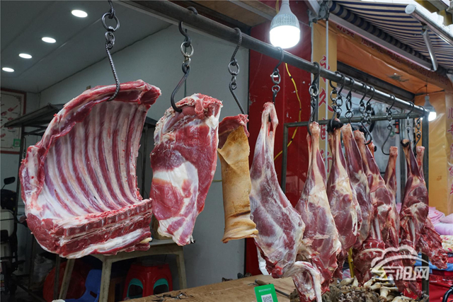 在柏楊灣智慧農貿市場,記者看到,售賣羊肉的攤位上擺放著肉色紅潤、紋理清晰的羊肉,還有肥瘦相間的羊排、健壯結實的羊腿,吸引著不少市民駐足挑選。攤主熟練地揮舞著手中的刀具,根據顧客的需求精準分割羊肉。