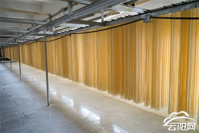 走進縣連年發食品有限責任公司生產車間,機器轟鳴、麥香四溢。工人們將小麥粉投入制面機,經過和面、壓片、切條等多道工序,一排排面條沿著傳送帶不斷輸送至二樓烘干區,生產現場一片繁忙景象。