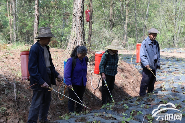 云陽網訊(記者 謝月) 四月春光正好,石門鄉廣益村的林間卻是一片熱火朝天的忙碌景象。每天一大早,村民們便攜鋤帶肥上山,在郁郁蔥蔥的樹林間穿梭,為一壟壟淫羊藿幼苗除草、施肥。眼下,正值中藥材春季管護的“黃金窗口期”,石門鄉搶抓農時,通過精細化管護,為全年的豐產豐收攢足“底氣”。
