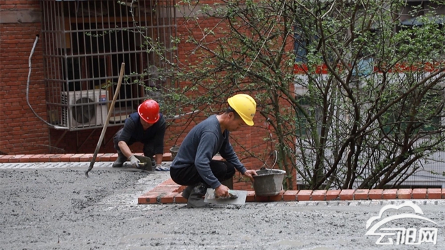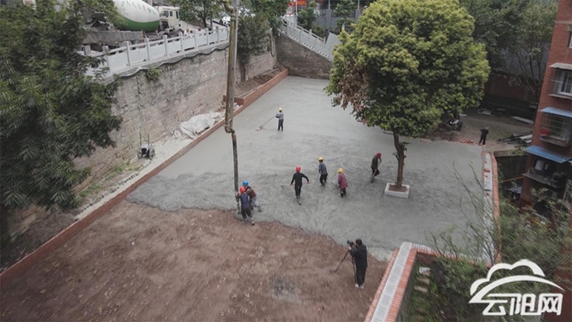 在雙江街道大雁社區(qū)桂花路,一處小型廣場正在加速成形。施工現(xiàn)場,水泥攪拌車往來作業(yè),工人們正進(jìn)行地面澆筑作業(yè),平整的混凝土鋪展開來,一個(gè)嶄新的小廣場已初見雛形。