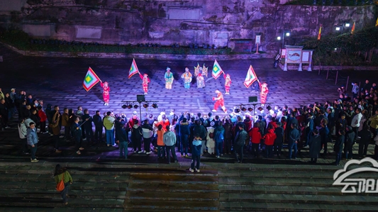 3月3日晚,云陽縣張飛廟景區迎來“星際·阿波羅”號游輪靠泊,來自香港、廣東、北京等地的300余名游客走進張飛廟,開啟沉浸式夜游。