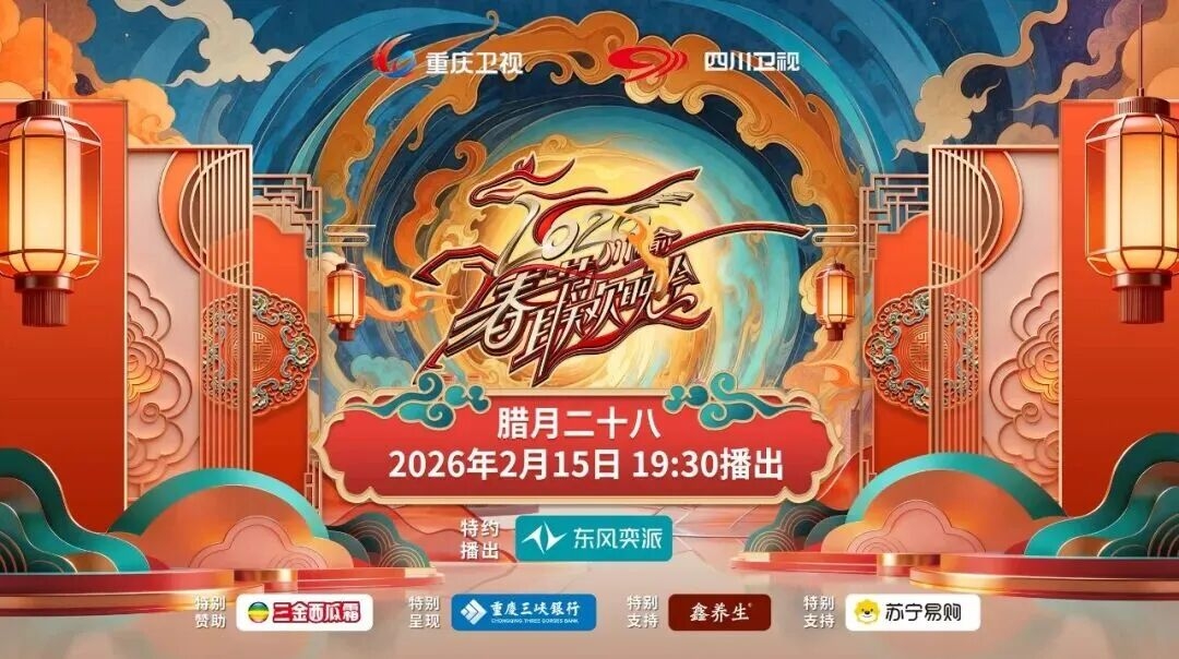 《2026川渝春節聯歡晚會》將于2月15日(臘月二十八)19:30在電視+手機+平臺全網播出