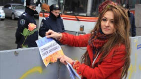 烏克蘭防暴警察被女示威者感動向其求愛