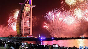 迪拜舉辦破紀錄煙火表演迎2014 40萬只禮花點亮夜空