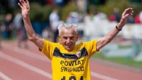 科瓦爾斯基穿上印有他的年齡“104”的黃色T恤,完成了在弗羅茨瓦夫運動場舉行的青年奧林匹克比賽。[詳細]